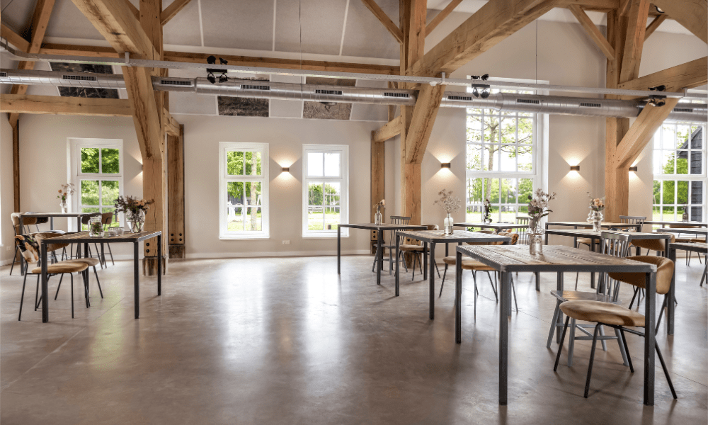 Onze evenementenlocatie straalt een kalme sereniteit uit, omringd door weidse groene velden en een betoverend landschap dat als het perfecte decor dient voor jouw bijzondere momenten. Binnen bieden we diverse ruime zalen die volledig naar jouw wensen kunnen worden ingericht. Of je nu voor een theateropstelling kiest of een informele opstelling, wij regelen het voor jullie. Het natuurgebied rondom de Weidehoeve vormt een rustieke omgeving die een diepe verbondenheid met de natuur oproept. Met uitgestrekte groene velden, kronkelende paden en rustieke landschappen biedt onze eventlocatie een oase van rust en sereniteit. Gasten worden omringd door de natuurlijke pracht van het Brabantse landschap, wat een gevoel van kalmte en welzijn bevordert.